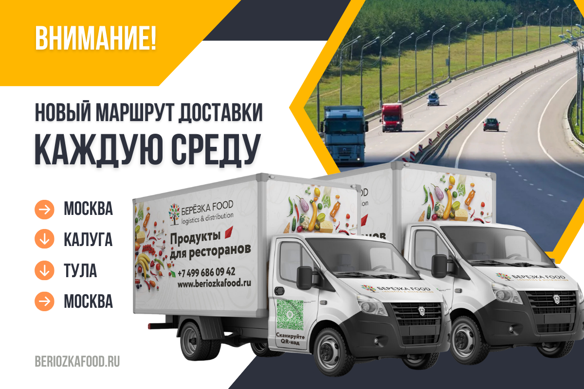 | Уважаемые партнеры! Берёзка FOOD запускает маршрут среды, с заездами в Калугу и Тулу. Если ваше предприятие находится по пути следования маршрута, или в указанных городах, и вы заинтересованы в сотрудничестве - свяжитесь с нами для уточнения деталей доставки. (Смотрите карту ниже) |